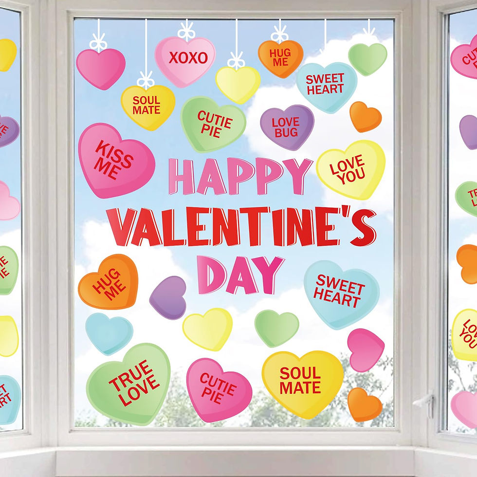 Whaline Happy Valentine's Day Window Clings Conversation Candy Heart