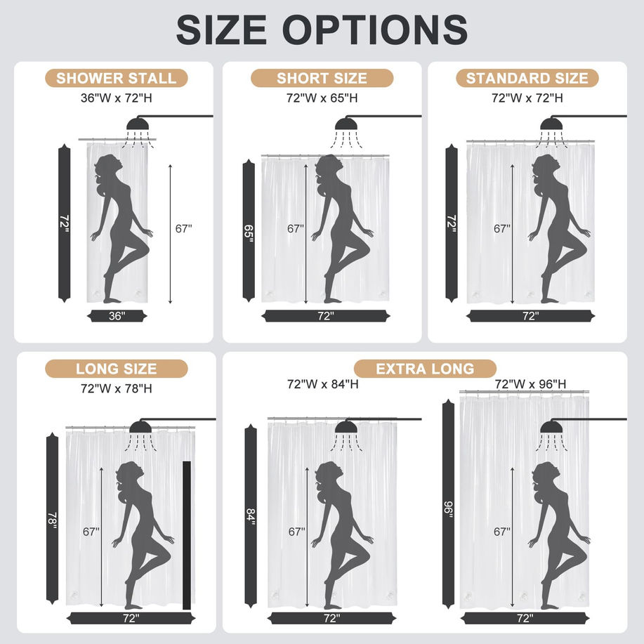 Thicker material: AmazerBath uses 12 gauge material that is thicker than other conventional shower curtain liners on the market. The bottom has 3 clear stones that add weight to the shower curtain, keeping it in place and away from your body. Waterproof design: Waterproof, like an umbrella that quickly forms a roller ball when it meets water and carries away surface dirt. Then the roller balls on the shower curtain liner will naturally air-dry on the liner surface to prevent water from dripping onto the floor, keeping your bathroom dry and clean. Clear crystal liner: The fully transparent design is see-through and does not block light. Creates a bright bathroom atmosphere. Can be used as a stand-alone shower curtain or paired with your favorite fabric shower curtain. Protects your expensive decorative shower curtain from dirt and discoloration. Easy to install: The liner provides 12 metal grommets to accommodate shower curtain hooks, or other decorative hooks. Whether you have a straight or curved shower rod, the AmazerBath shower liner can be installed easily. At the same time, the metal grommet holes promote ease of hanging and lasting strength. Applicable to multiple scenes: The 72" X 78" size achieves perfect coverage for your various shower installations. Great for showers and tubs in homes, hotels, motels, dorm showers, easy to install and take down, and great for camping trips with family and friends.