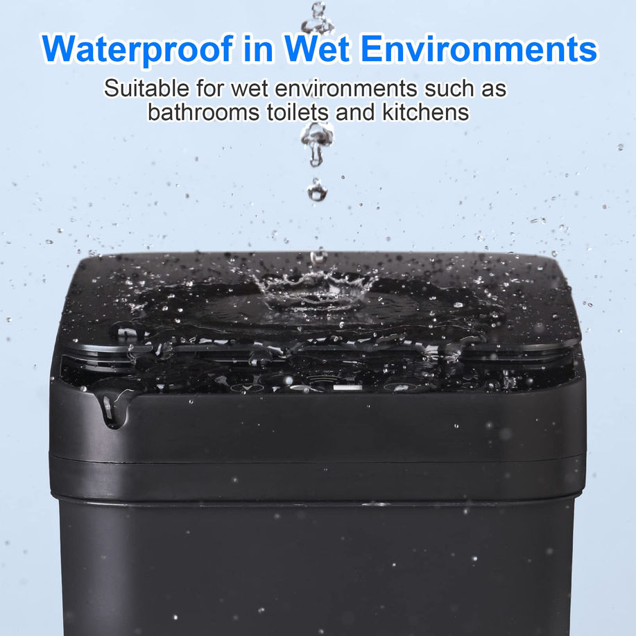 SMALL TRASH CANS - The 2.2 gallon induction trash can is suitable for small bathroom narrow space and it will look smaller, The size is 9.3''L×6''W×12.6''H.if you mind, please buy other larger trash cans in our store. SAVE SPACE AT HOME AND CONTROL THE SPREAD OF ODORS - 3 Pack ultra-thin bathroom trash cans with 2.2-gallon capacity saves space and is ideal for limited space or tight crevices, powered by 2 AA batteries (not included). After testing, this trash can has very good airtightness and can seal the odor of garbage. It is the perfect partner in your home. TOUCHLESS TRASH CAN - Our motion sensor trash can uses advanced automatic sensing technology, you only need to put your hands or knees in the sensing area (6-10 in), then the trash bin can capture your every movement within 0.3 seconds to achieve precise sensing, and finally it will automatically turns off when you leave the sensing area for 6 seconds. Such an intelligent sensor design can easily throw garbage without bending over even when you can't have a free hand. SEAL LID DESIGN - Our motion sensor trash bin adopt high-quality materials and advanced design. This automatic trash can still maintain the sensitive opening and closing performance of the bucket lid in the daily wet and splashing environment, It is not afraid of water splashing, and there is no problem of touch failure. So it is very suitable for toilet, bathroom, living room, bedroom. SILENTLY OPENING AND CLOSING - The interior of the rubbish can adopts an upgraded smart chip, which can still maintain high efficiency and long battery life under the premise of satisfying different opening and closing methods of the trash can. Anborry induction trash can cover adopts air damping technology, which can be opened and closed silently and slowly, even if you throw garbage in the middle of the night, it will not disturb your families' rest.