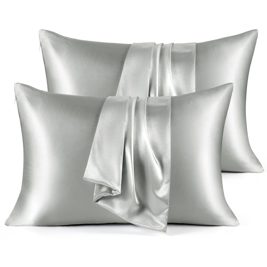 Bedsure Satin Pillowcase for Hair and Skin - Grey Zipper King Size