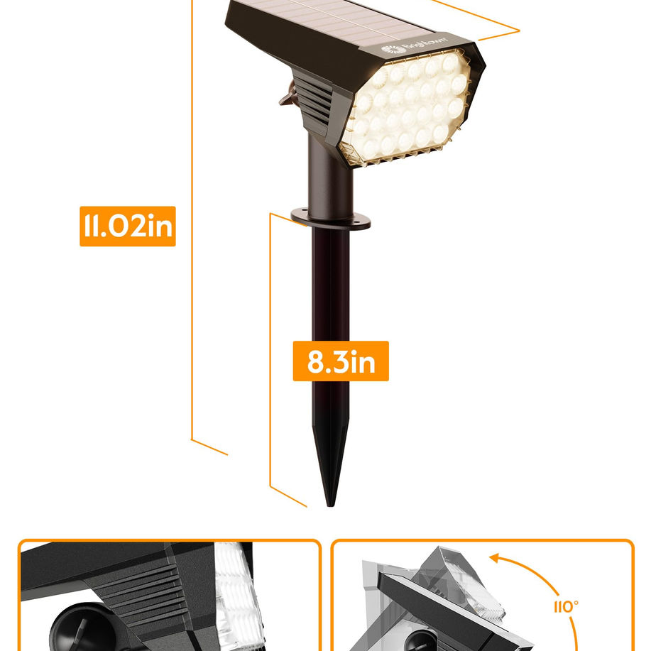 ใ๐๐ฎ๐ฉ๐๐ซ ๐๐ซ๐ข๐ ๐ก๐ญ ๐๐ฎ๐ญ๐จ ๐๐/๐๐ ๐ ใEach Brightown Solar Spotlights Outdoor is built in 24 super bright LED beads, and it will come on automatically when it gets dark, enough to add life to your gardens and light up your pathways nicely. ใ๐๐ฎ๐๐๐ถ๐ป๐ด ๐๐ถ๐ด๐ต๐๐ถ๐ป๐ด & ๐ฎ ๐๐ถ๐ด๐ต๐๐ถ๐ป๐ด ๐ ๐ผ๐ฑ๐ฒ๐ใOur outdoor solar garden lights use high-power LEDs, we provide 3000K warm white and 6000K cool white in two colors and three brightness levels of 30%, 60%, and 100% for selection. ใ๐๐ป๐ฒ๐ฟ๐ด๐ ๐ฆ๐ฎ๐๐ถ๐ป๐ด & ๐ฏ ๐ง๐ถ๐บ๐ถ๐ป๐ด ๐๐ถ๐ด๐ต๐๐ถ๐ป๐ด ๐ ๐ผ๐ฑ๐ฒ๐ใBrightown outdoor solar lights for yard have high-efficiency solar energy conversion, no additional electricity bills, and the energy conversion rate is 30% faster than the old version. ใ๐๐๐ฟ๐ฎ๐ฏ๐น๐ฒ ๐ฎ๐ป๐ฑ ๐ช๐ฎ๐๐ฒ๐ฟ๐ฝ๐ฟ๐ผ๐ผ๐ณ ๐๐ฑ๐ฒ๐ฎ๐น ๐ฆ๐ฝ๐ผ๐๐น๐ถ๐ด๐ต๐๐ใBrightown Solar Spot Light using high strength and durable ABS material, coupled with its special IP67 waterproof and anti-fog design makes the outdoor lighting products have better lighting effects and service life. It is able to light up your garden, yard, pathway, and pool under all kinds of extremely awful weather. ใ๐ฎ ๐ ๐ผ๐๐ป๐๐ถ๐ป๐ด ๐ข๐ฝ๐๐ถ๐ผ๐ป๐&๐๐ฎ๐๐ ๐๐ผ ๐๐ป๐๐๐ฎ๐น๐นใsolar landscape lights can be easily inserted into the ground or mounted on the wall, whether it is a landscape, garden, driveway, walkway, patio, lawn, or fence, wood or any material wall, they can be installed and work perfectly.