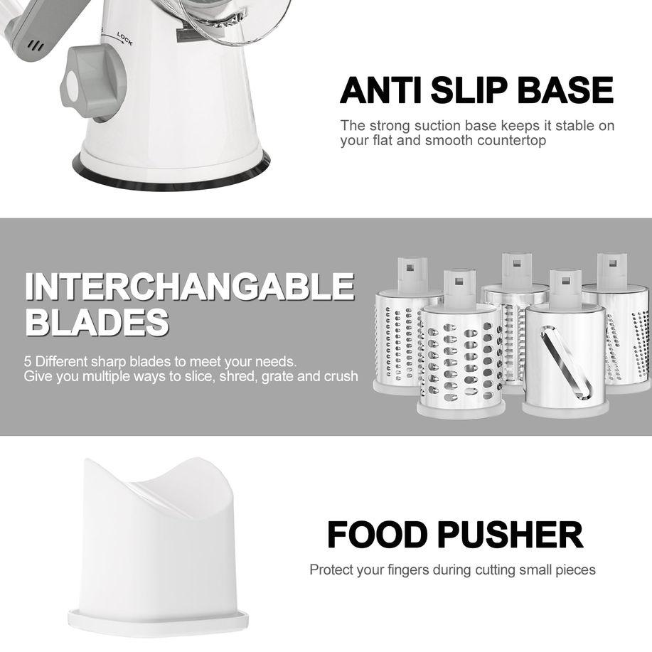 Cambom 5 in 1 Rotary Cheese Grater Hand Crank Cheese Shredder for