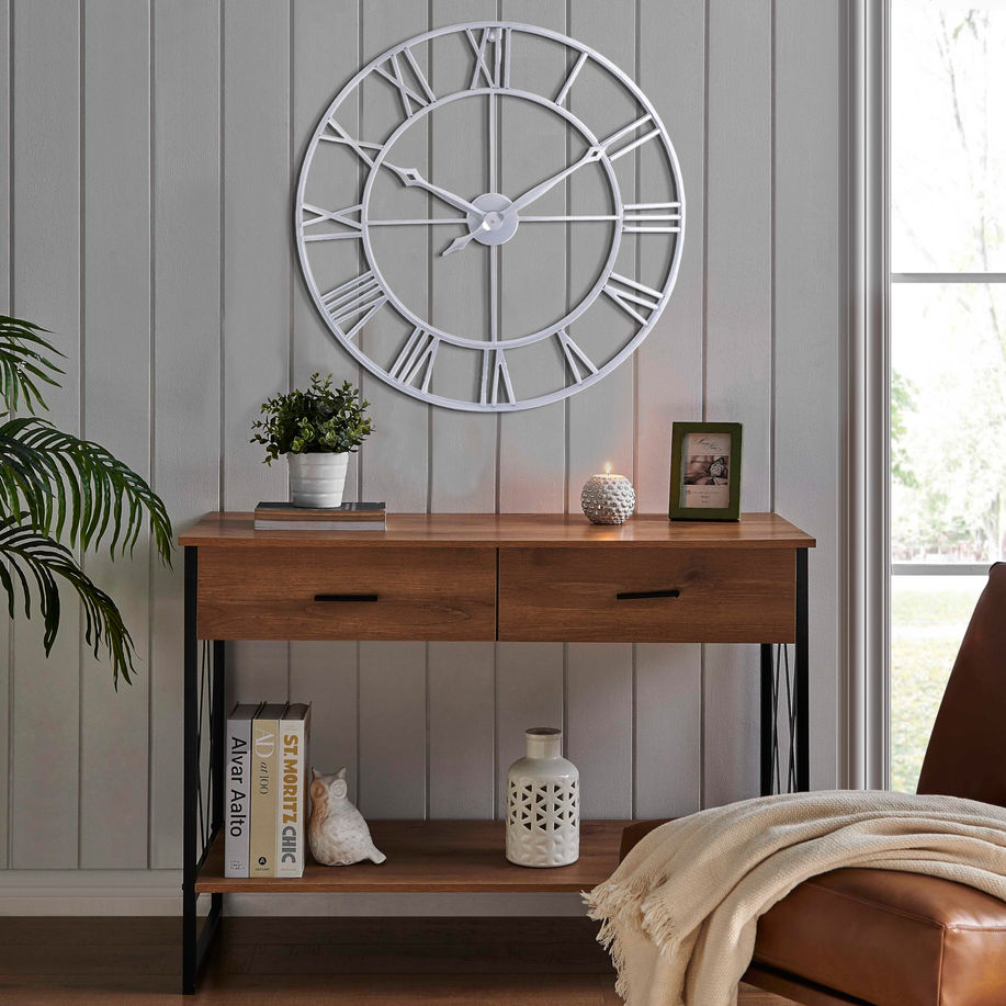 CLXEAST Large Modern 30 Inch Wall Clock Silver, Oversized Big Roman