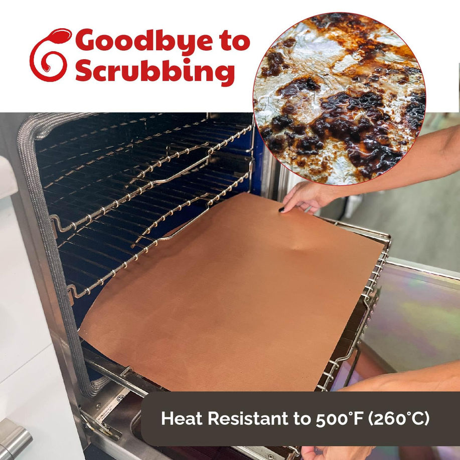 Heavy-duty, non-stick oven mat for bottom of oven - This 16.5" x 23" oven liner by Cooks Innovations can be trimmed for a perfect fit. A better alternative to aluminum foil, designed to withstand temperatures up to 500°F (260°C). No scrubbing - keeps your oven clean - Protects against spills, drips, and baked-on messes. A non-stick oven mat for bottom of oven that saves time and effort, keeping your oven spotless after every use. Reusable & easy to clean - Wipe it down or toss it in the dishwasher—this oven mat for bottom of oven by Cooks Innovations makes cleanup effortless and lasts through countless uses.Avoid scrubbing and wiping hard-to-reach areas with our removable oven liners. Custom fit for any oven - Easily cut to size for a snug fit in standard and large ovens. Works great in electric, gas, convection, and toaster ovens. Premium quality & food-safe materials - Crafted by Cooks Innovations with BPA & PFOA-free materials, ensuring durability and safety while baking, roasting, grilling or cooking.