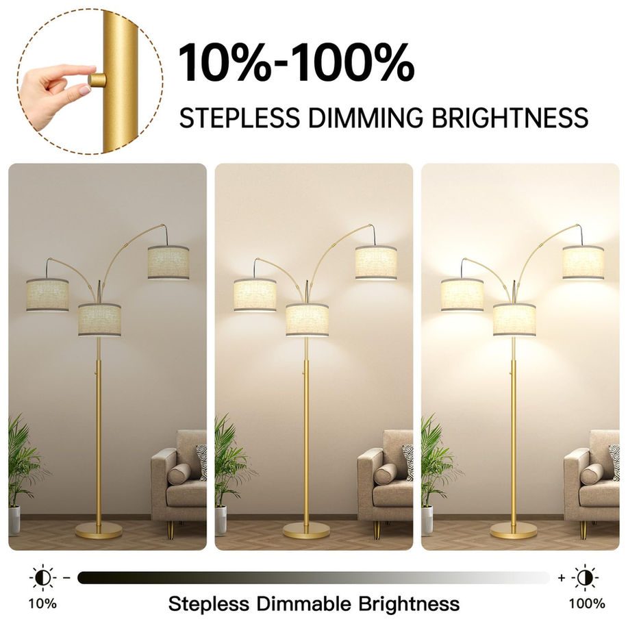 Dimmable Gold Floor Lamp, 3 Lights Arc Floor Lamps for Living Room,