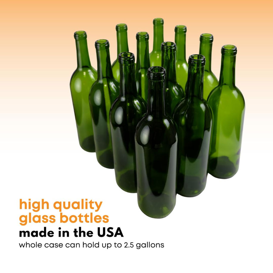 FastRack Green Wine Bottles, 750 ml Capacity (Pack of 12), 750ml &