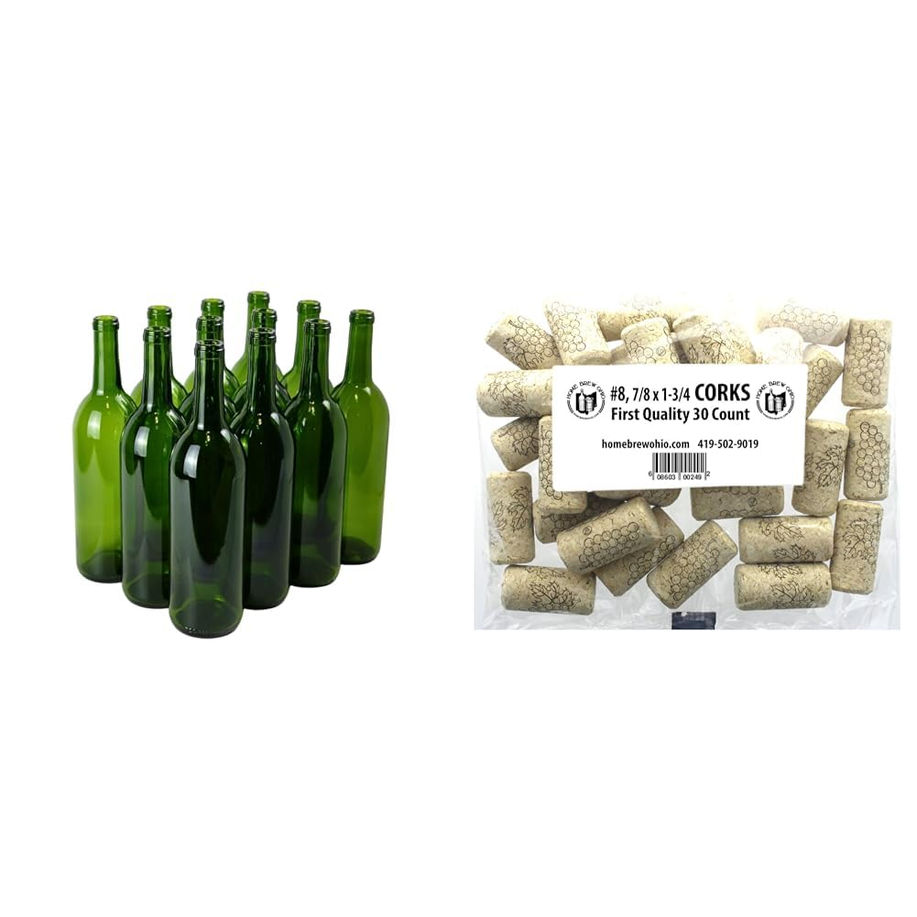 Product 1: FITS NO. 8 AND NO. 9 CORKS: With your order, you will receive 12 wine bottles for wine making. These W5 glass liquor bottles have a cork finish and will accept no. 8 and no. 9 sized corks (A Floor Corker is recommended for #9 corks). Product 1: STYLISH DESIGN: FastRack Bordeaux colored wine bottles will make your wine look extra special when presented in these stylish bottles; another reason to be proud when offering your homemade drinks to friends and families. Product 1: ONLY NEW MATERIALS: FastRack empty glass bottles are made from new high quality materials. These are unused, empty green glass wine bottles and not plastic ones. Each green bottle is 750 ml and in total the whole case can hold up to 2.5 gallons of wine. Product 1: QUALITY GUARANTEED: Our colored bottles are manufactured here in the USA. You can expect durability and consistent quality over a long period of our glass bottles usage. We guarantee you'll have a great experience. Product 2: BAG OF 30 pcs: Premium bottle corks tapered for wine bottles for wine making and crafts. Wine corks in bulk for everyday use and your replacement cork needs.