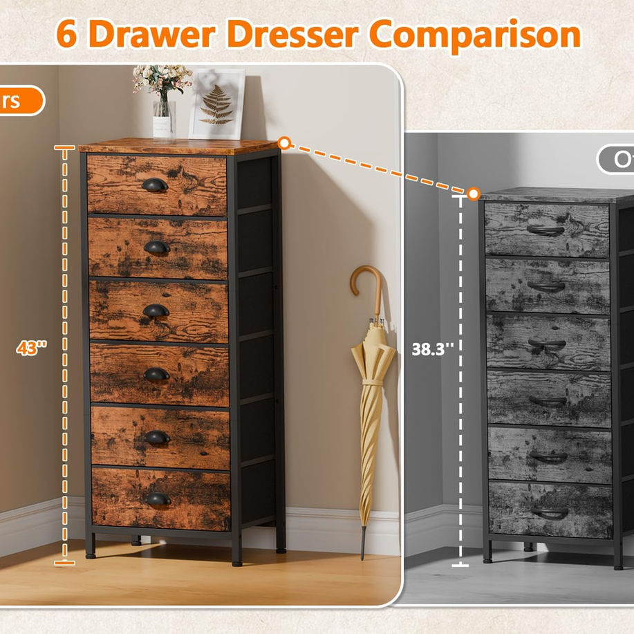 Furnulem Tall Dresser with 6 Drawers,Vertical End Table and