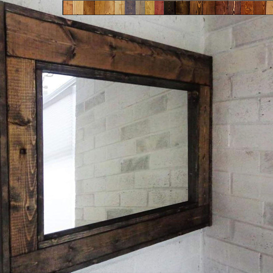 Our Herringbone Mirror is custom made to order, Handmade in Warrington, PA USA. This is NOT a mass-produced product. Made from USA sourced rustic reclaimed styled eastern white pine and premium quality 1/4 inch glass mirror. Available in 20 Stain Colors (Shown in Dark Walnut). Not sure on color we do samples, message us for details. Available in 5 sizes 22" x 24", 24” x 30”, 30" x 36”, 42" x 30" or 30” x 60”. Mirror sizes are listed according to exterior dimensions. Mirrors can be mounted in a horizontal or vertical hanging orientation. LOOKING FOR A DIFFERENT SIZE? We are always open to custom projects, please contact us for a quote. Choose either heavy duty saw tooth hangers or Z-bar Hanging System, Z-Bar hanging system is highly recommended for the 60" x 30" size Over the years we have developed specialized package material including custom made corners, premium quality burst resistant bubble padding and customized boxes to help us ship all over the world. We are proud to have well less than .05% shipping damage. If that rare event does occur and your mirror is damaged, we will replace or fully refund your purchase.