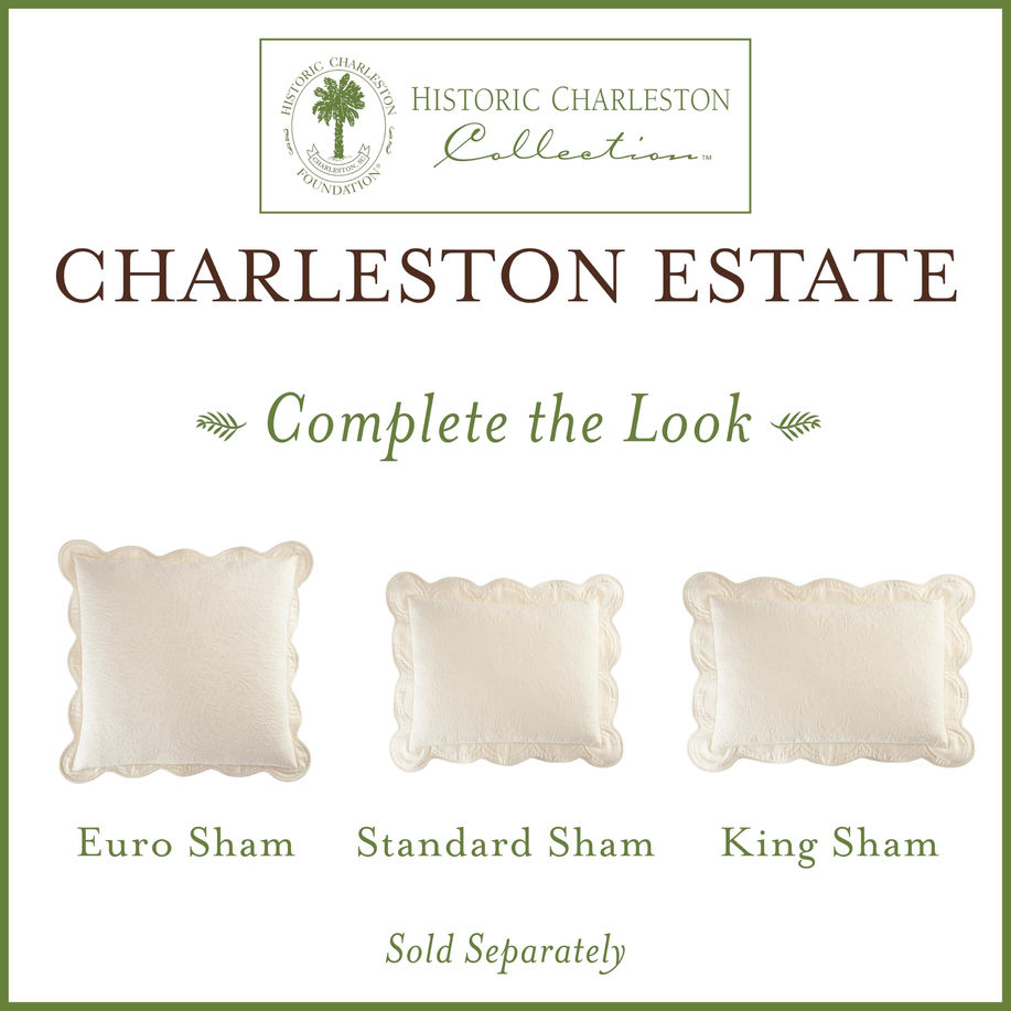 MODERN FARMHOUSE BEDDING – Full/Queen size coverlet features a matelasse quilted stitching technique and is constructed on a special weaving loom for luxurious quality, measuring 90” x 96” BEAUTIFUL DESIGN – Based off designs from Historic Charleston's rich heritage, the lovely Charleston Estate collection features an embossed pattern with floral motifs and a scalloped edge detail for an elevated look PREMIUM FEEL – Breathable, 100% cotton fabric incorporates the fine arts and superior craftsmanship of 18th-century England. It offers a generous weight and is stonewashed for softness you can feel throughout the night MATCHING SET – Pair it with coordinating bedding items to create an elegant look for bedrooms, guest rooms, or Airbnbs. The intricate designs will transform your home by adding color and texture to your bedding or when used for decorative layering at the end of your bed CONVENIENT CARE – An easy-care bedding set that you can put in the washing machine. Wash in large capacity non-central agitator washer only with like colors and mild soap, do not bleach. Reset to normal spin dry cycle for maximum water extraction. Tumble dry low heat. Dry cleaning is a recommended alternative