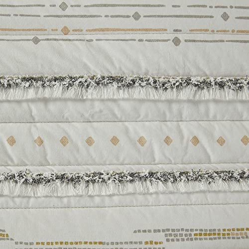 Give your bedroom a shabby chic update with the INK+IVY Cotton Printed Quilt Set with Trims accent. The 100% cotton quilt features a geometric stripe print with tassel rows accent that add dimension to the charming boho look. Naturally breathable cotton cover and hypoallergenic polly fill for year round comfort Set includes: 1 Coverlet: 104"W x 92"L, 2 King Shams: 20"W x 36"L + 0.5"D, 1 Pillow: 12"W x 16"L Care Instruction: For your convenience it's machine washable. Do not use bleach. Commercial size washer and dryer is recommended for best result.
