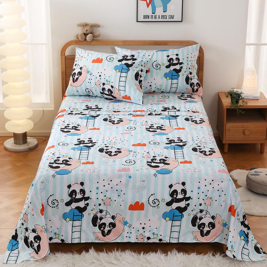 JSD Blue Panda Kids Sheet Set Full Size, 4 Piece Moon Stars Printed
