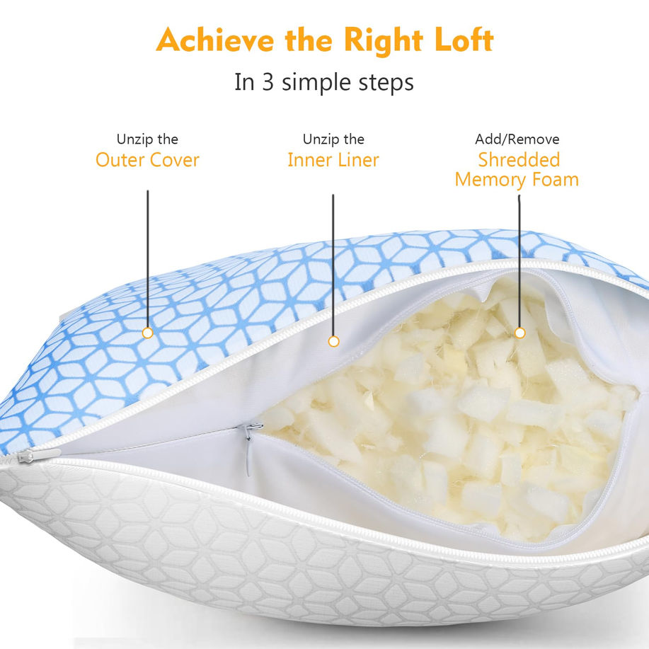 Relieve Neck and Shoulder Pain:Love Attitude shredded memory foam pillow combines the advantages of typical memory foam pillow BETTER SUPPORT and regular bed pillow SOFT, the cross cut memory foam can provide support evenly to your neck so that your shoulder pain can be relieved, at the same time, the microfiber blend makes the pillow soft. Cooling and Soft Fabric Pillow Covers: Double sided cover--cooling fabric and rayon made from bamboo, the viscose made from bamboo side is soft, the cooling side is smooth and makes you feel cool, and both sides are breathable, you can enjoy cooling nights in summer with the cooling side and a soft feeling the rest of the time. Adjustable Firmness: Compared with traditional one-piece memory foam pillow, the Love Attitude shredded memory foam pillow is is designed to satisfy stomach sleepers, back sleepers and side sleepers’ different needs, you can ADD or REMOVE foam filling to suit your size, shape or sleep position. Premium Materials: All the fluffy bed pillows are made in an OEKO TEX Standard Certified factory that ensures textiles meet high safety and environmental standards. All fill material is made of clean and new cross-cut memory foam and microfiber blend, we don’t use any leftovers. You can buy all the Love Attitude shredded memory foam pillows with confidence. Buy with Confidence: Your satisfaction is our main goal! If you are not satisfied with your purchase, please do not hesitate to let us know immediately. We will provide you with the best solution!