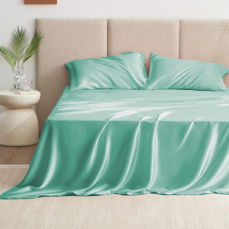 Love's cabin Satin King Sheet Sets - 4 Piece Aqua Silky Satin Sheets