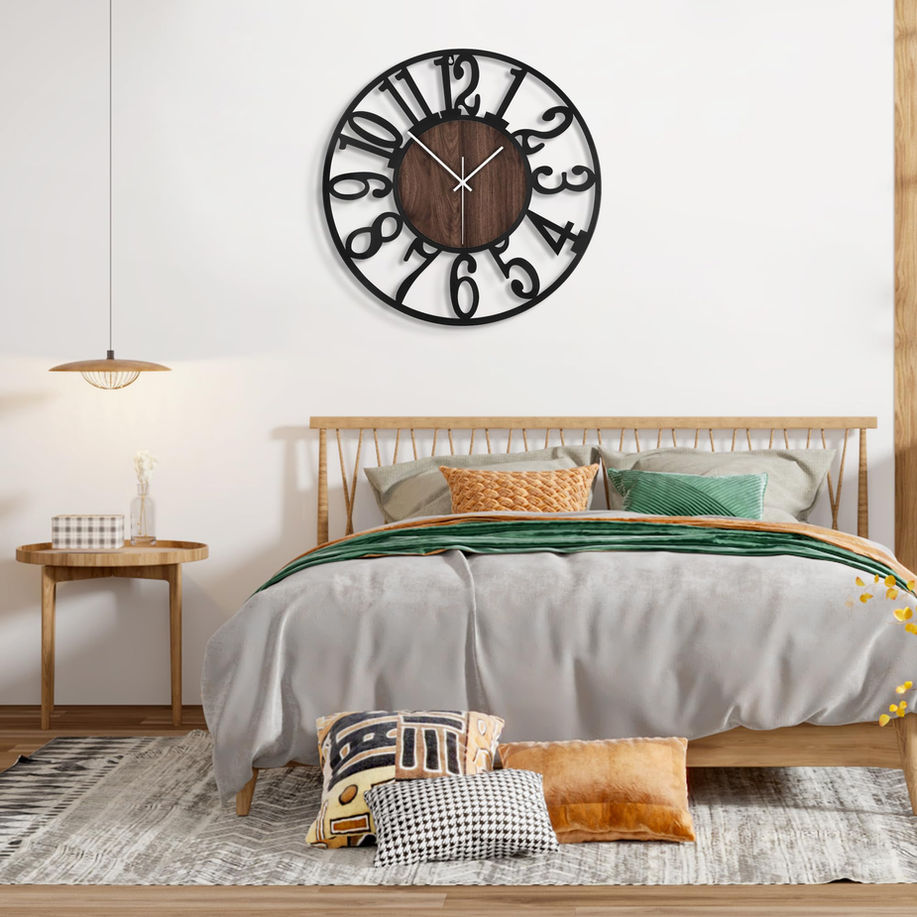 Easy To Read - Elevate your space with our round black metal wall clock featuring bold, easy to read arabic numbers. it's the perfect centerpiece for any room, complementing diverse home décor styles effortlessly Silent Wall Clock - Experience tranquility with our non ticking wall clock with second hand. Crafted with high-quality brand movement, it operates silently, ensuring an undisturbed ambiance whether you're working or unwinding Effortless Setup - Simplify your life with our decorative wall clocks. The hook design minimizes wall damage while enhancing stability, and the rear slot allows for quick hanging. Just pop in a single AA battery (not included), and you're all set Elegance & Vintage Wall Clock - Embrace simplicity with our clock's MDF wood sticker face adorned with sleek black metal arabic numerals. Its classic design, featuring white hour and minute hands, adds sophistication to any space, effortlessly blending with various décor themes Chic Home Accent - Add a touch of modern elegance with our large wall clock. It's more than just a timepiece; it's a statement piece ideal for living room, kitchen, dining rooms, offices, bedrooms. Share the gift of style with loved ones on special occasions like Thanksgiving or Christmas