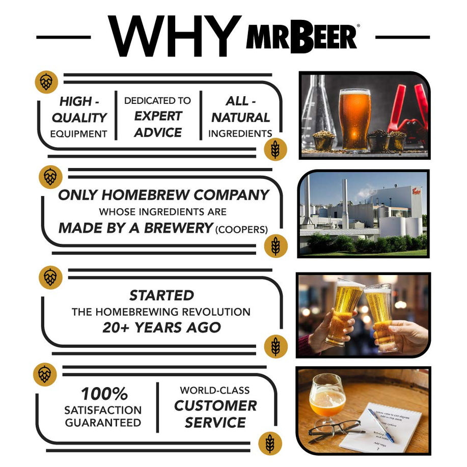 Easy Home Brew - This all-in-one kit includes everything you need, from fermentation equipment to supplies and ingredients, making it the perfect kit for beer enthusiasts. Complete Beer Making Kit - No need for additional large pots, strainers, or brewing equipment. All you need is a Mr. Beer Kit, water and common kitchen items to get started. Brews in 30 Minutes - Using our hopped Malt extract, you can brew up a batch of beer in less than 30 minutes. You will have ready to drink beer in 3-4 weeks. Includes A Second Refill - This kit comes with a bonus refill so you can get to brewing your second batch right away. Makes a total of 4 gallons. DIY Kit Beer Accessory - The Mr. Beer four gallon kit comes with Canadian Blonde and Octoberfest Lager you can create your own unique craft beer.