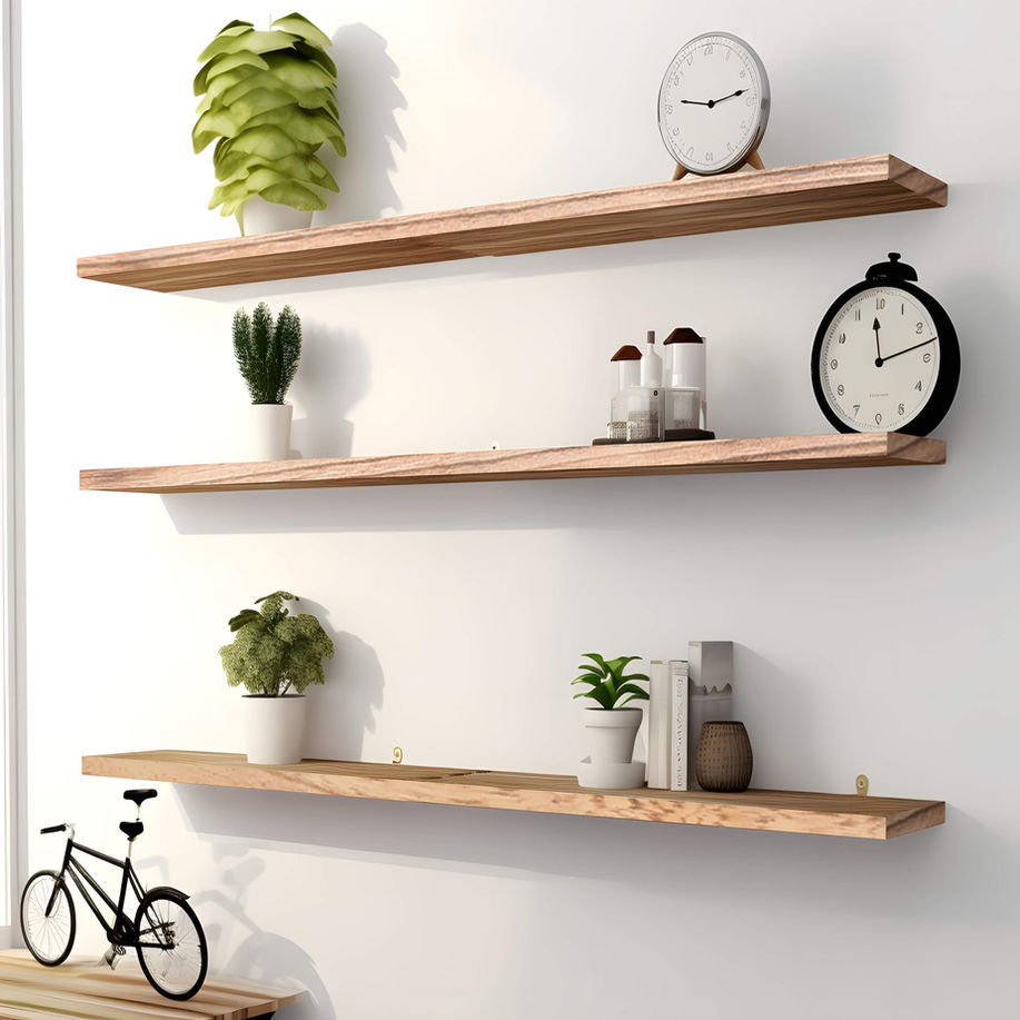 Real Wood Floating Shelves: Crafted from solid wood for a durable and sturdy design. PHPH wood floating shelves with natural wood grain give a rustic feel to any space. Modern Rustic floating shelves: PHPH modern rustic floating shelves provide a industrial look that will blend well with modern and farmhouse wall decor alike. You are sure to make a welcome addition and a warm touch to your bedroom. Display Decor Floating Shelves: The rustic floating shelves are perfect for displaying your photo frame, small plants, model, collection, books, or prize. And add a rustic yet modern feel to the atmosphere of your home. Easy Install floating shelves: Instructions, drywall anchors, and screws included. You can easily mount these floating shelves in less than 10 minutes! Size & Guarantee: Size 6"D x 47.6"W x 1"H. Sturdy enough to hold up to 20 lbs. If you’re dissatisfied with our floating shelves for any reason, we will replace.