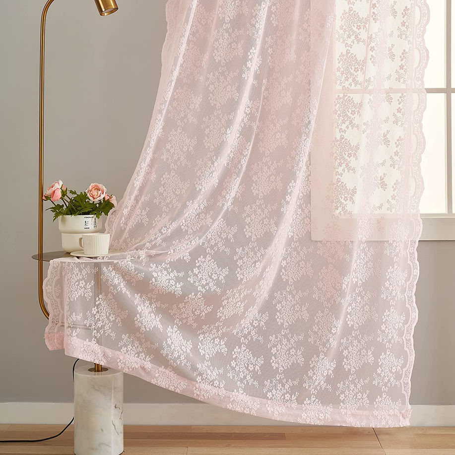 Sold as Pair, 2 Panels Pink Lace sheer curtains 96 inch Long included.Each 1 panel is 52 Inch wide by 96 inch long . Soft and quality lace fabric. Classic and Delicate - This pretty pink lace curtains is divinely feminine with a delightful floral theme against finely-dotted netting, and adds vintage-inspired glamour to décor. Light Filter&Provide Privacy- These pink sheer curtains provides some privacy while allowing light into the room. These Sheer pink Curtains are Machine wash cold, gentle. Do not bleach. Lay flat or hang to dry. Touch up with cool iron if desired Any questions about this pink curtains for girls bedroom contact us via the Amazon messaging service and we will response within 24 hours.