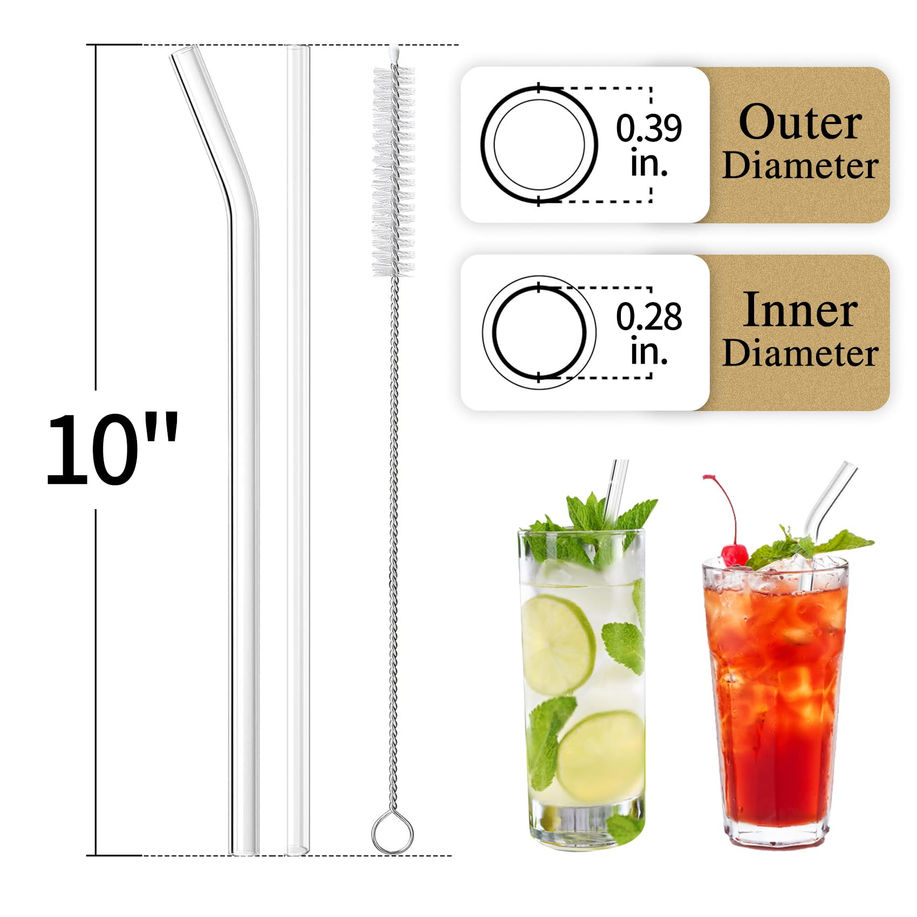 【Product/Item Include】 6 straight glass straws + 6 bent glass straws + 4 straw brushes. Straw size: 10" (250mm) length and 0.39" (10mm) diameter. Color: Rainbow. Brush size: 10" (250mm) length. 【Reusable & Premium Material】 These straws are made of food grade high borosilicate glass. Lead and BPA free. Be high strength, stiffness, hardness and good resistance to mill. It is also more transparent, suitable for making drinks and reuse. 【Good Partner for Beverages】 Suitable for mason jars, various tumblers, bar glass and more glass cup. Perfect for various beverages such as: Smoothies, Milkshakes, Juice, Coffee, Tea, Milk and Cocktails. 【Easy to Clean】 Easy to clean the inside of the straws with the 10" straw brush. They are also be dishwasher safe due to high borosilicate glass material. 【Satisfaction Guaranteed】 Please note that the glass drinking straw has a certain hardness, but it still can be broken if dropping on the ground. If you receive a damaged product or have any other dissatisfaction, contact us and we will do our best to offer a satisfactory solution for you within 24 hours.