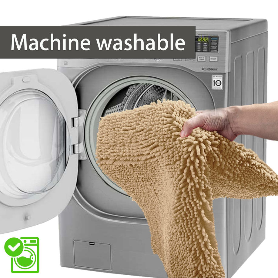 【Perfect 3 Pieces Chenille Bathroom Rugs】Our bathroom rug set include 1 Small Bath Rug 16"x24", 1 U-Shape bath mat 20"x20", 1 Large Bathroom mat20"x32". The three different size perfect fit your hotel, sauna, shower, gym for bathroom, bedroom, dining room, living room, and so on. allows you to step on the soft carpet in the bathroom without touching the cold ground.suitable for indoors/outdoors. 【Ultra Plush Shag and Soft Feel】Our chenille bathroom rugs made of thousands of super long and soft individual microfiber shags, enough length shags and over 3 phones's thickness makes them surround the soles of your feet, make your feet feel comfortable. 【Non-Slip Bathroom rugs】Our chenille bathroom rugs set use anti-slip PVC backing design, friendly design for after taking shower old, child, pet. This anti-skid backing has practically slip resistance on the tile floor surface, that it won’t slip or slide to keep you more safe and cozy. The rugs are much stronger and durable for long lasting use. 【Superior Water Absorbency】The black Bathroom Rugs and Mats Sets is consist of 3 layers, the top 1.3 inch long individual microfiber pile layer made of thick Chenille fabric; the middle layer is filled with sponge; the bottom is a PVC non-slip layer. This three-layer structure makes our bathroom carpets have excellent water absorption performance, which can absorb a lot of water in a very short time. 【Easy to clean Bath Rugs】-The Chenille bath mat is machine washable and dry, making it very easy to clean. Simply place the mat in the washing machine and wash gently in cold water without using chlorine or bleach. The mat's anti-slip and water absorption properties are not affected after washing, and the color will not fade.