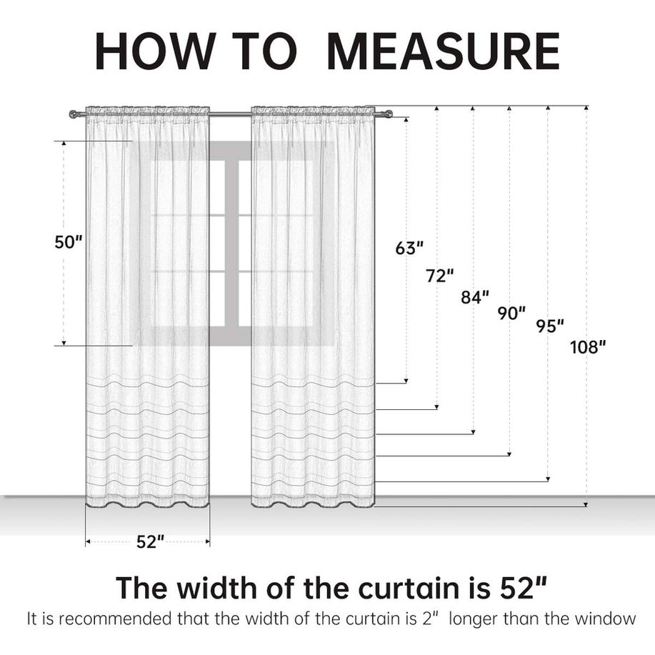 Package Included: SpaceDresser sheer curtains are made of High-Quality polyester fabric, soft to touch. Each pack includes 2 sheer panels of 70" wide x 63" length. Our sheer curtains with top dual rod pockets design, makes the curtain appears more beautiful and vivid. 2" diameter sewn rod pocket which fits the most of curtain rod. 2" Bottom Hem makes the lightweight sheer with a more vertical sense and more elegant Right Balance the Privacy And Light: The voile sheer curtains will allow natural light through the beautiful weave but fade the glare of sunlight, and give you light & airy feel. Provide your living space a hazy and softer vision. Multi-Purpose: These lightweight semi sheer window curtains are perfect choices for bedroom, living room, dining room, kids’ room, nursery, kitchen, hotel, office and outdoor decorations and more. Easy to Care: Machine wash cold, gentle cycle, do not bleach. And tumble dry low and warm iron when needed