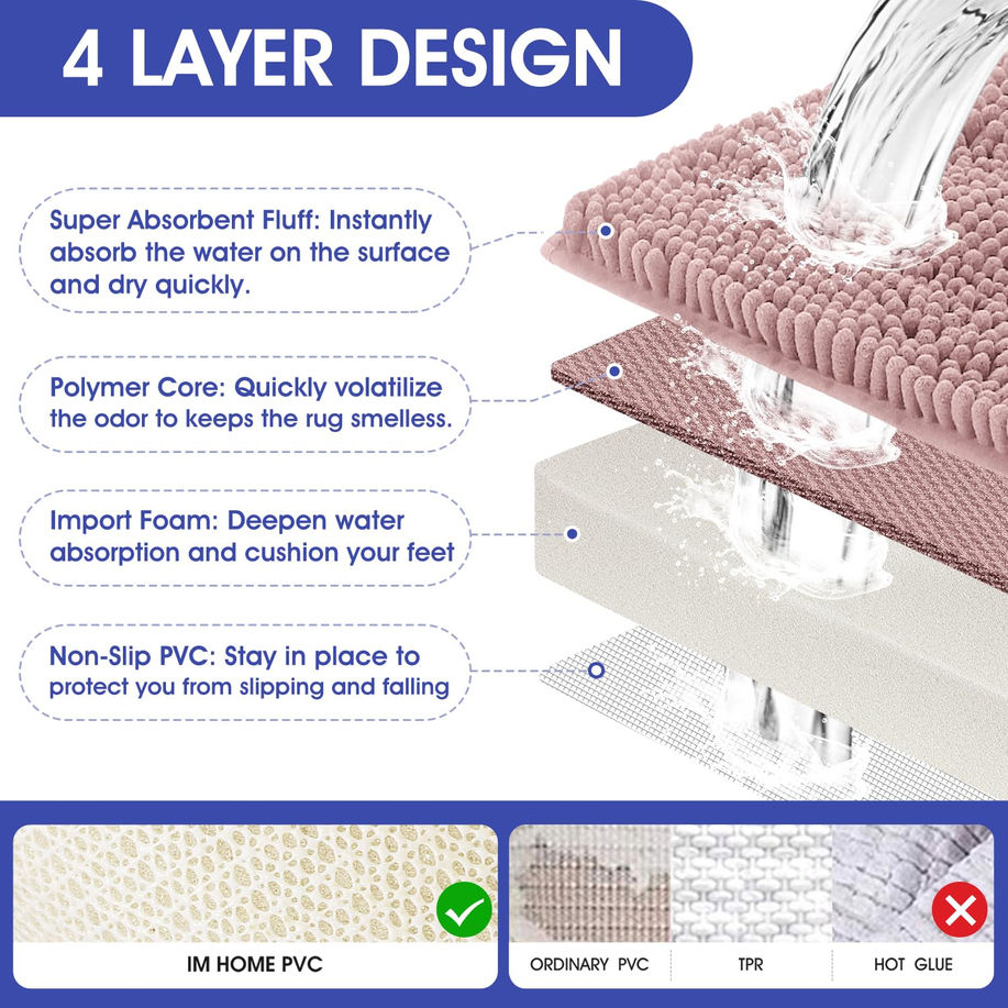 LUXURY 3 PIECE BATHROOM RUG: Including 1 Large Bath Rug 20"x32", 1 U-Shape Contoured Rug 22"x24", 1 Small Bath Rug 17"x24". ACCUMTEK bathroom rug set made of 100% luxurious chenille fabric microfiber with higher pile than others. The thick and soft chenille helps soothe tired feet and keep your toes warm on the cold floor. The high density and plushness of the chenille offers exceptional comfort and support for your feet. You will feel like stepping on a cozy cloud to enjoy the ultimate luxury. PREMIUM PURE CHENILLE: Crafted from upgraded shaggy chenille material, the surface of ACCUMTEK bathroom mat owns extra high density and plushness. With unique fiber-locking technique, our toilet rugs set are thicker and better constructed than most other bath mats, totally say goodbye to horrible fiber-dropping! SUPERIOR ABSORBENCY: The bold pile chenille on the top surface of the luxurious toilet mat soak up a lot of water and keep your floor dry when you're stepping out of the bath, Bathtub, shower, or getting ready by the sink, moisture is trapped in the bathroom rug’s deep pile, to avoid the dripping water disturbing your bathroom's serenity and tidy. UPDATED NON SLIP BACKING: The backside of ACCUMTEK bathroom carpet is covered in a high-quality natural PVC that keeps the bath rugs firmly in place. Heavy-duty PVC construction makes the mat under strong grip which will prevent your families from slipping and sliding. The thick fabric and bottom makes it more bushy and sturdy than others. Provide the maximum safety and warmth to you! EASY CARE: Simply machine wash on cold with mild detergent and tumble dry low. Air dry fully before use. Do not iron or bleach. We can sure you can find the best price from here because we are the manufacturer with a good product quality and after-sales service. If you think this floor mat does not satisfy you, just email us to get the solution.