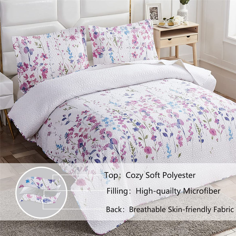 【Size Information】Twin Size purple white lilacs pure and fresh bedding include 1 bedspread(68"x86") + 2 standard pillow shams(20"x26"+2").Note:The pillow shams pattern may random. 【All Seasons】Floral leaves pattern design is made for all seasons,especially in spring and summer.Use it with a blanket or sheet underneath for warmer weather. As a bedspread to provide warmth with comforter under it in cold weather. 【Material & Durable】Made of 100% high quality thin lightweight breathable microfiber polyester, it is cozy and breathable even after washing. Quilted stitching and tight seams will not unravel, allowing for many years use. 【Gift & Versatile】Ideal gift for your family members,friends and pets. Light and portable floral leaves quilt are available for travel,in the summer,you can take it to the beach or park as a beach mat or picnic mat,that will make your journey unique.(Note: No waterproof).And can put on sofa as a daybed cover.Also perfect freshness decoration for bedroom, guest room, kids room,vacation home,hotel or cabin room. 【Easy Care】Wash before use. Machine wash cold with gentle cycle,separately from other colors. Not wash in hot water,it may cause a slight loss of color. Tumble dry and Iron on low heat. Do not dry clean.