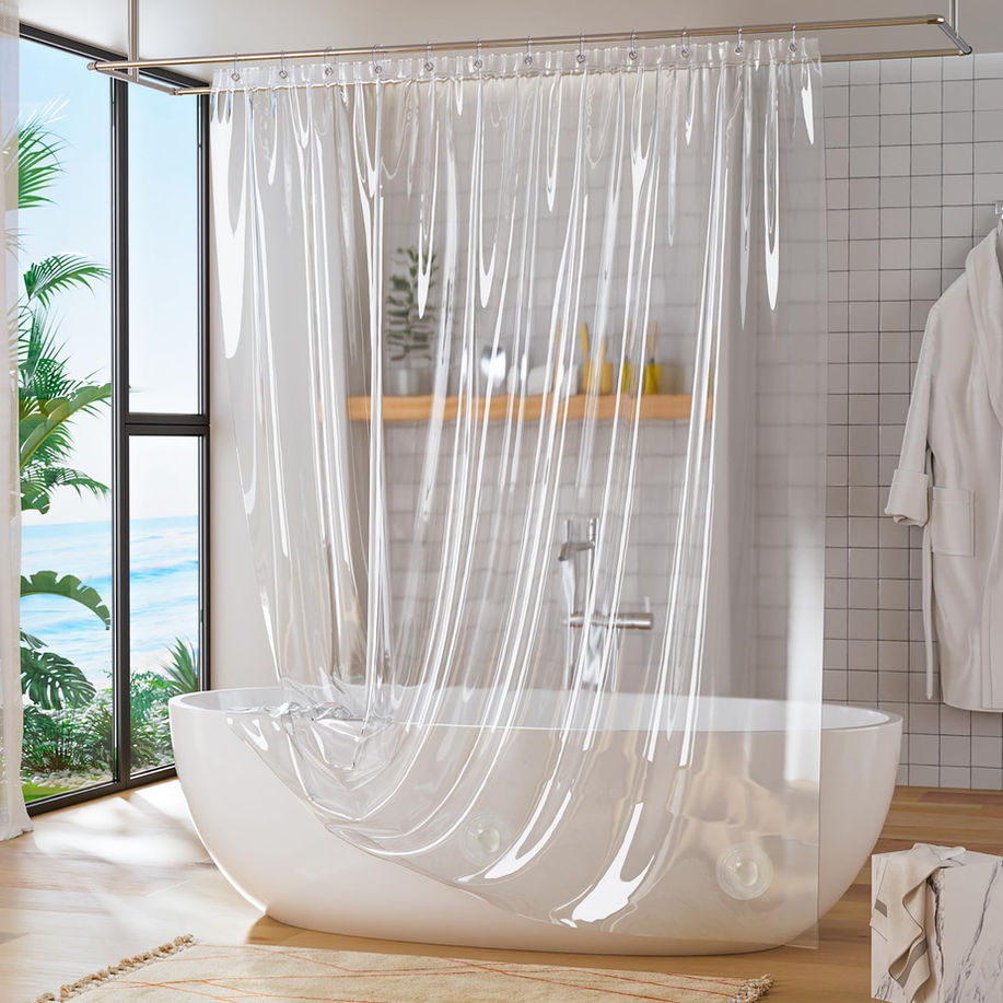 Premium heavy-Duty: Made from high-quality weighted PEVA material, this shower curtain liner is durable and tear-resistant, providing a comfortable shower for your family. Weighted stones: Titanker shower liner features 3 big weighted transparent stones at the bottom to hold the liner in place and prevent water from seeping into the rest of the bathroom. Versatile and practical: This plastic shower curtain liner can be used alone or in combination with a decorative shower curtain. The clear shower curtain liner allows light to filter in, creating a bright feel in your bathroom. Sturdy grommets: Equipped with 12 rust-resistant metal grommet holes, the transparent shower curtain liner can be easily hung and removed. Compatible with many standard size shower hooks. Waterproof: The smooth surface of the shower liner is designed to resist water and promote the formation of water droplets, which quickly roll off the shower pad and keep the floor dry and clean.