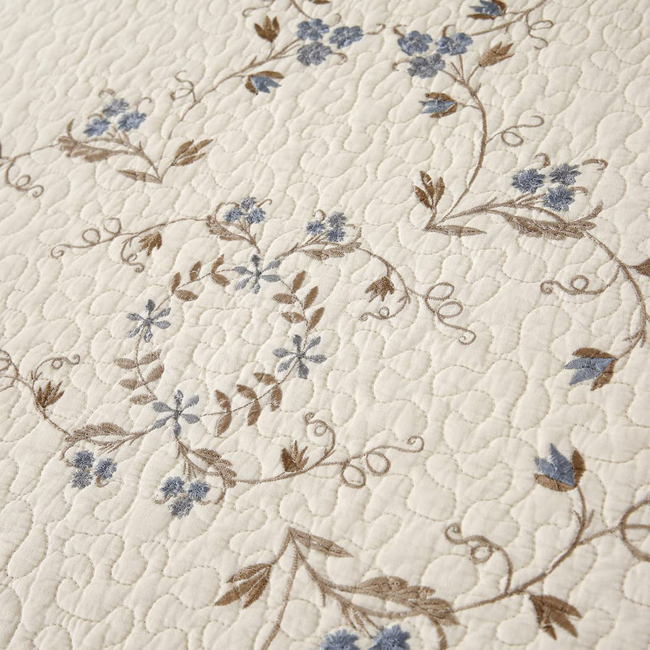 Material:Cotton Fabrics, Stuffed With High Quality Cotton. Includes: 1xQulit 104"x91"(264x230cm); 2xPillow shams 20"x26"(51x66cm). Design: A sweet charming classic quilt that never goes out of style. Embroidered with wreaths of soft blue flower and sweet brown leaves for a delicate design. All Season: Quilt set for spring and summer, bedspread and flat sheet for winter, sofa cover for all year round, keeping warm and clean at the same time, it can be everything you need! Care Instruction: Machine wash gentle cycle with cold water. Do not bleach. For drying, use tumble low dry or sun or air dry.